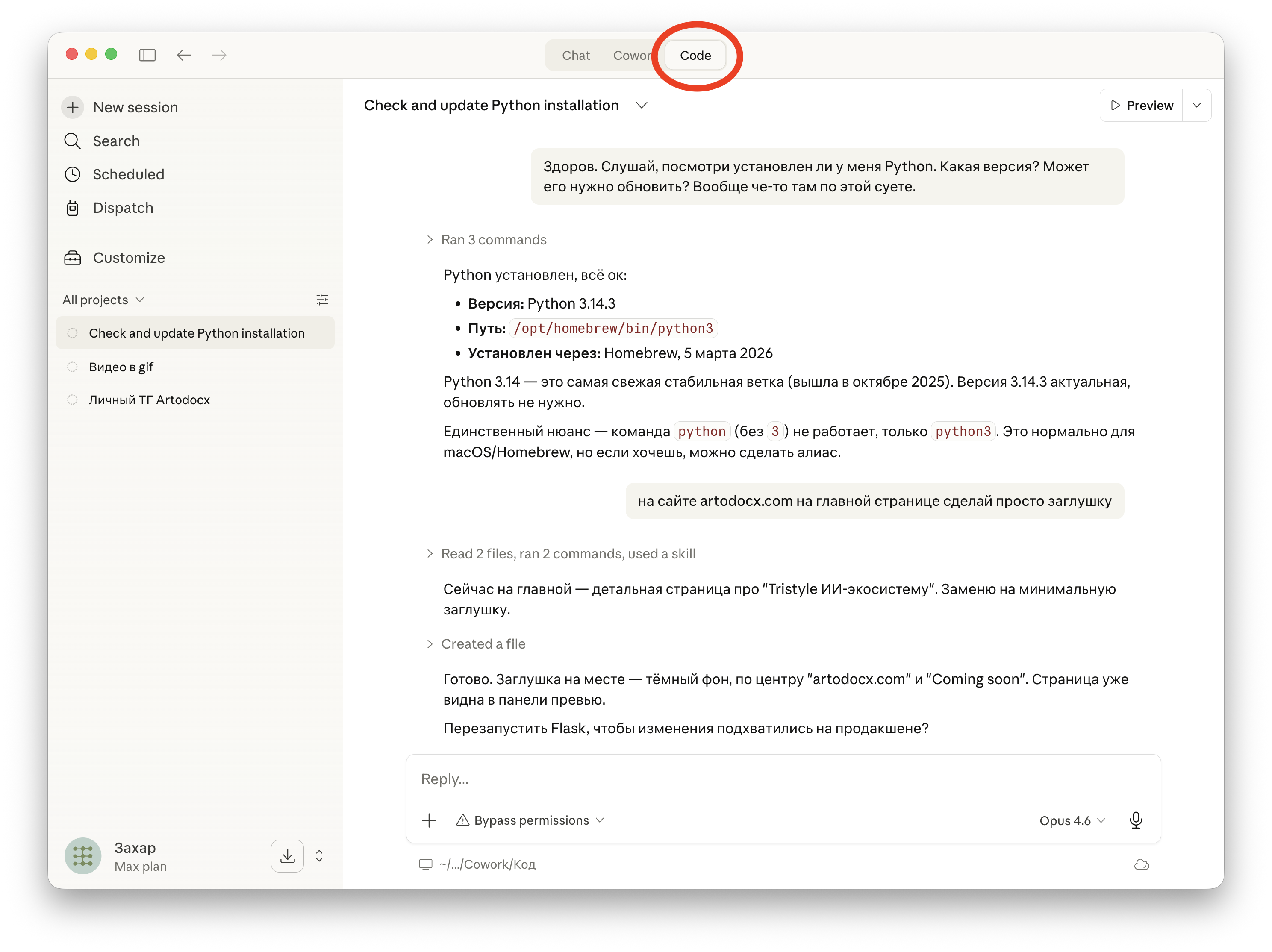 Вам оно так, конечно, не надо, но это лишь пример что может делать Claude в режиме "Code". Единожды разобравшись с подключением его к сайту компании – потом можете одним запросом переделывать сайт. Добавлять товары, менять дизайн, редактировать...