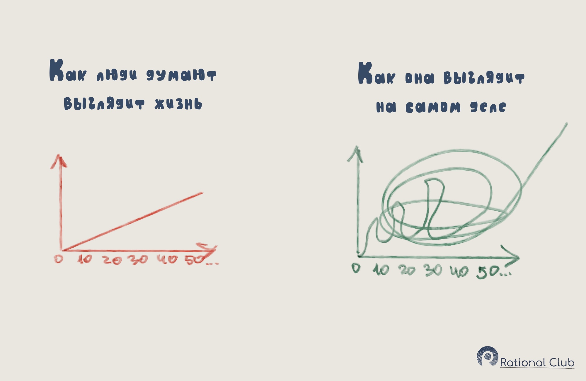 Нет возраста к которому нужно всё понять. Нет универсального тайминга во сколько лет надо найти дело жизни, любовь, поднять доход. Нет даже финишных протоколов, где можно посмотреть своё место и кто впереди.