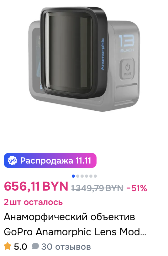 Или вот ещё пример. Недавно купил себе анаморфотный объектив на GoPro. Объявление выглядит так: