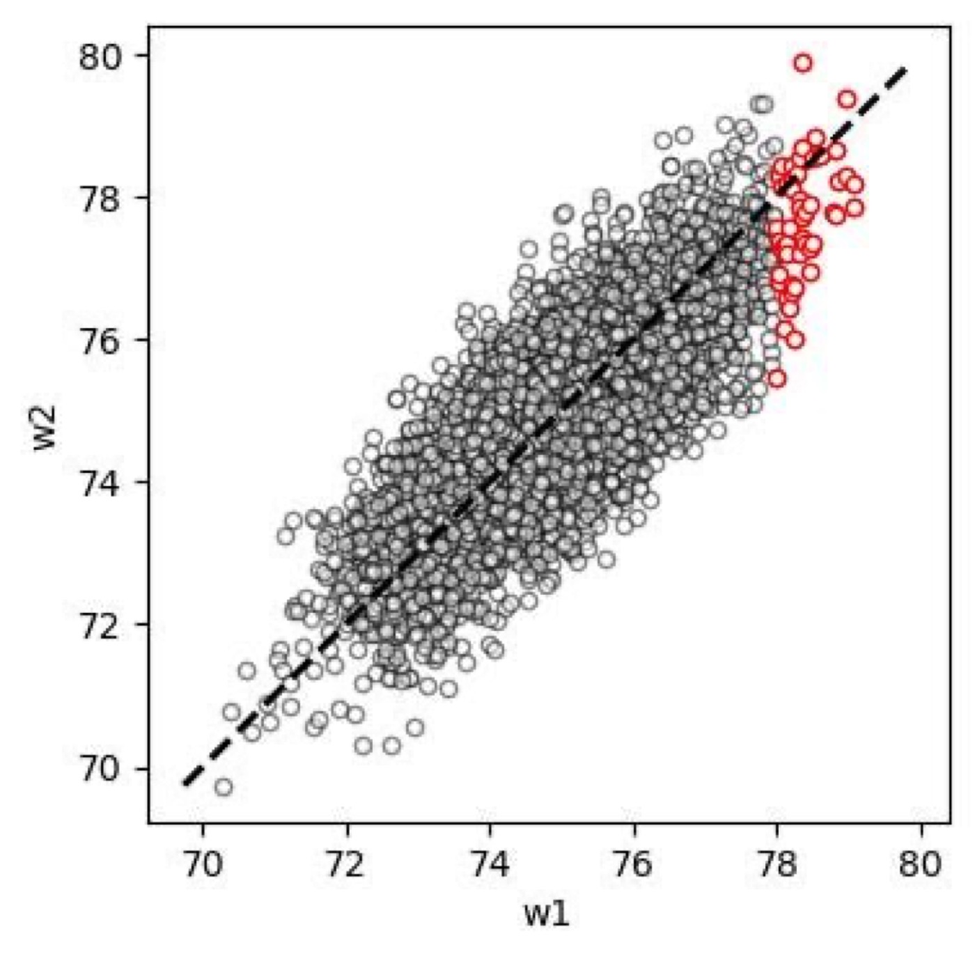 Давайте измерим вес 5000 человек, а потом снова через неделю. Поскольку он колеблется, но сильно за неделю не меняется, цифры будут похожи, но не равны.