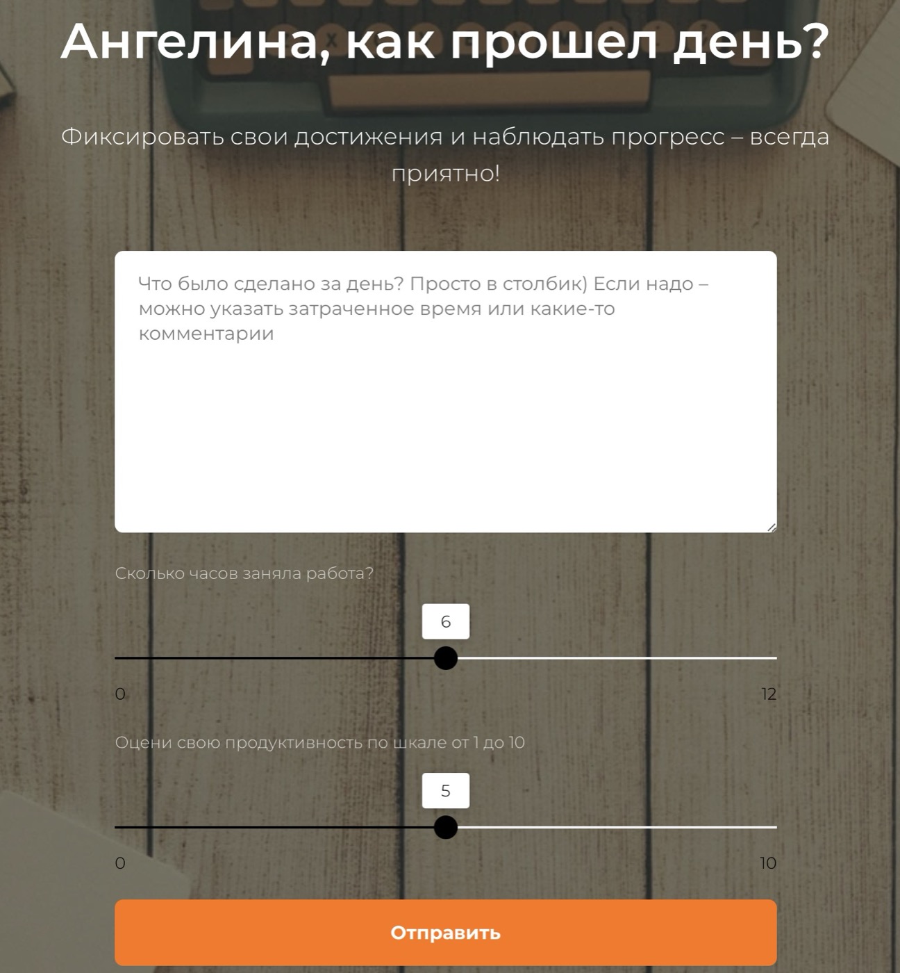 А также 2 ползунка о затраченном времени и субъективной оценке продуктивности.