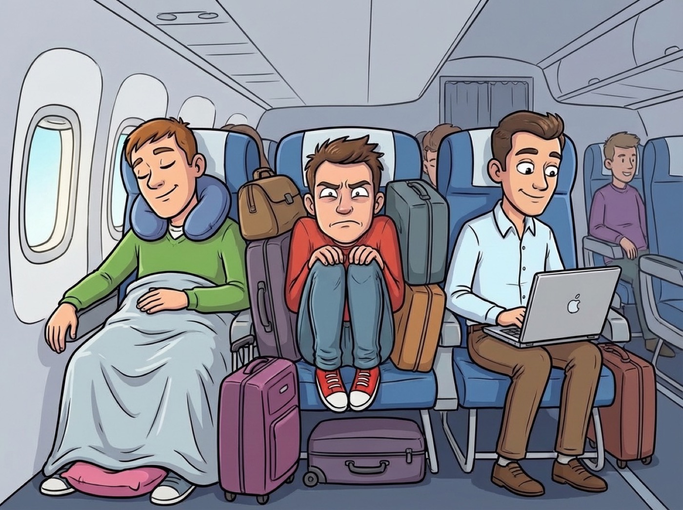 Посередине всегда тесно – выбирайте места или у окна, или у прохода.