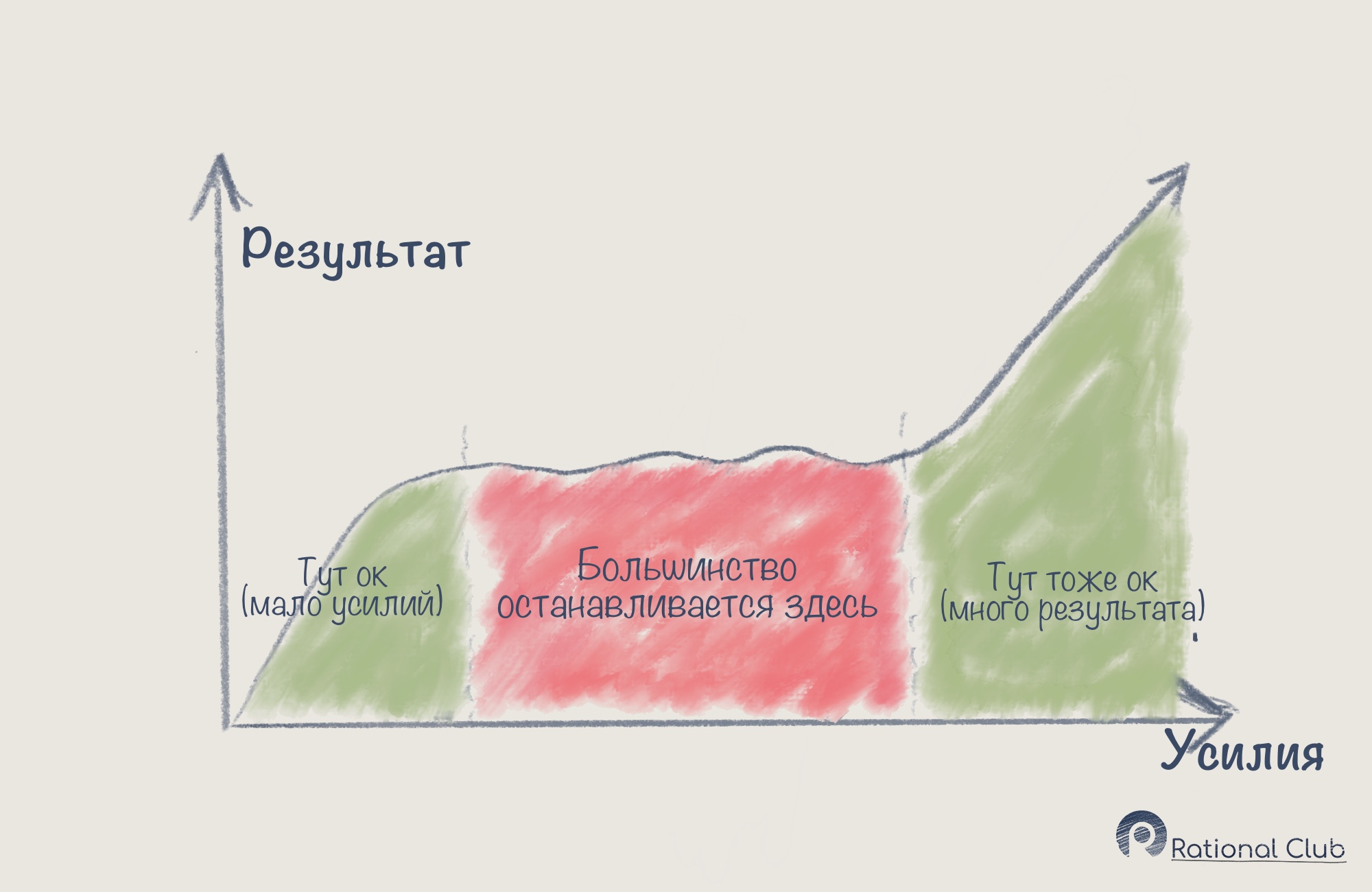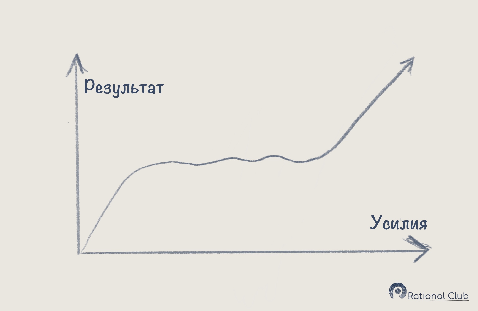 Давайте перестроим график, где Х – затрачиваемые усилия (на работу, дело, хобби, что угодно), а Y – прирост результата.