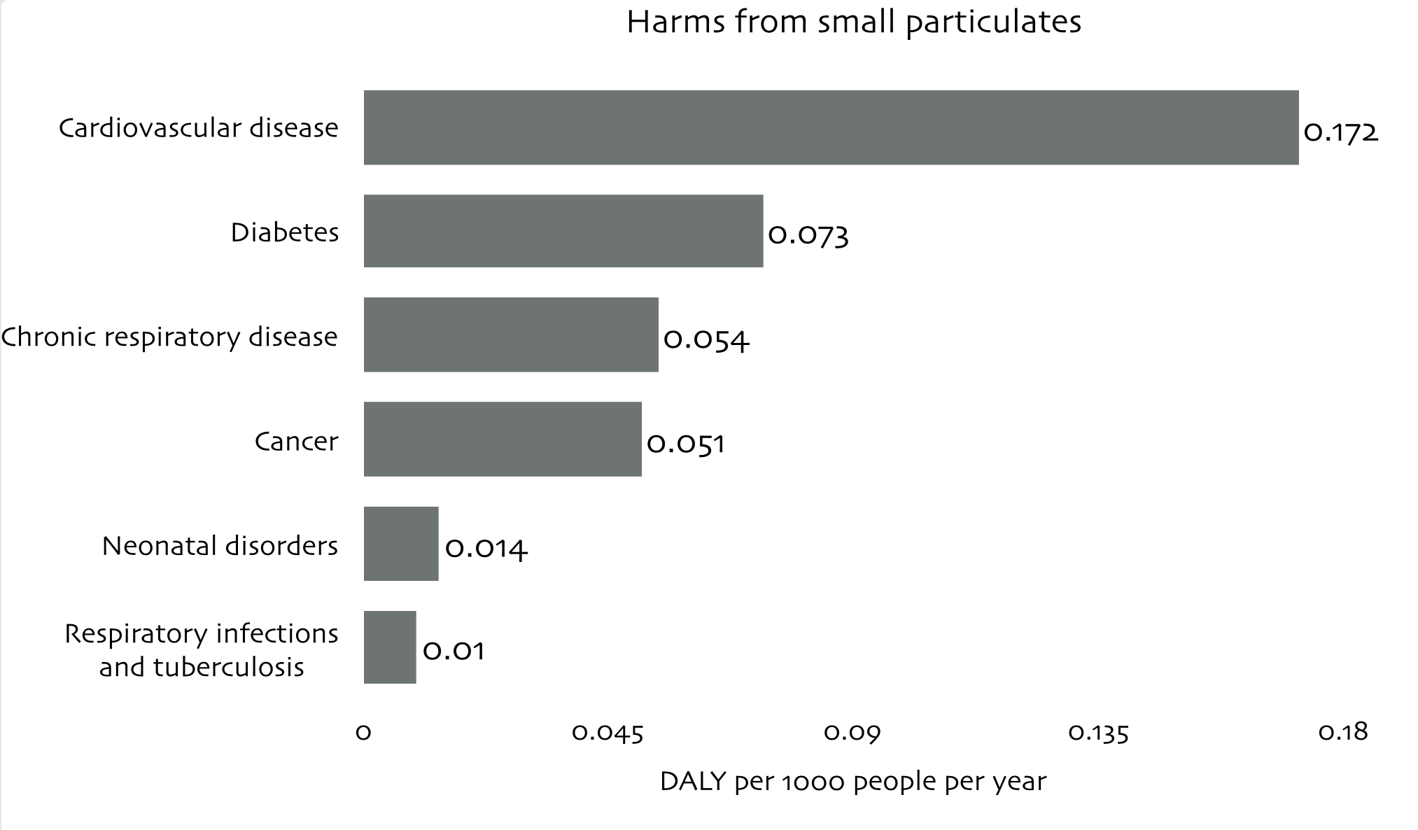 Не буду грузить цифрами. Просто вывод: пожизненное вдыхание воздуха с количеством частиц 33PM стоит 1 DALY (1 год с поправкой на инвалидность).